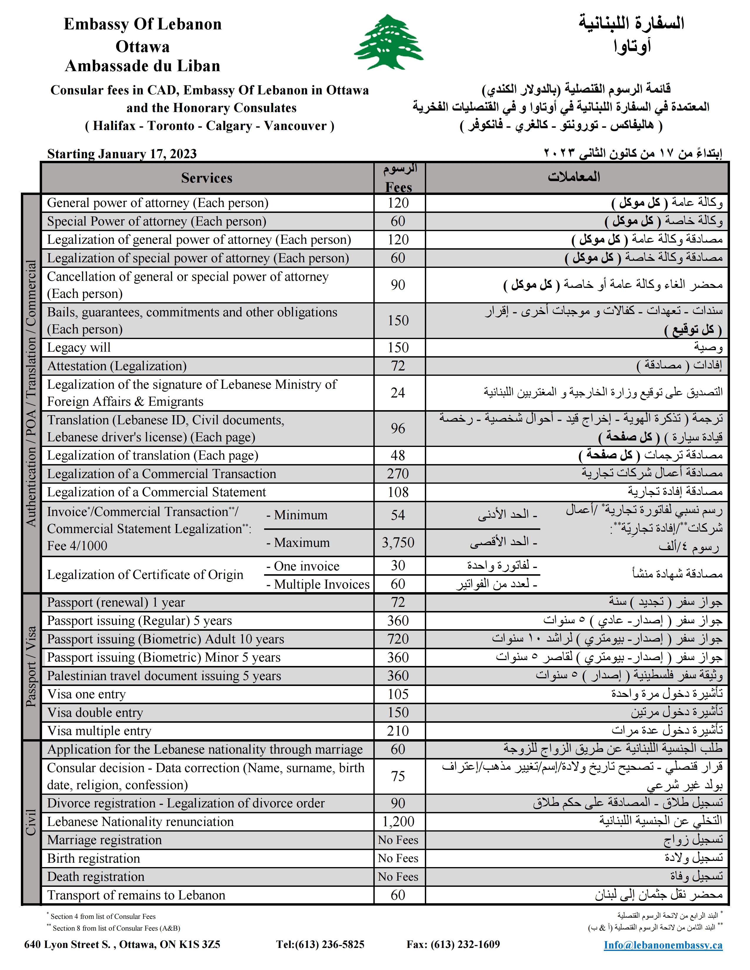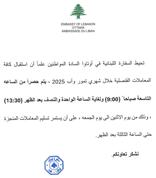info@lebanonembassy.ca عبر البريد الإلكتروني